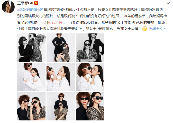 明星經(jīng)紀公司知道“浪姐”王菲菲和母親“女王涵”鄧女士拍攝了一組合照,照片中兩母女緊緊相依,母女情深,霸氣中不失溫柔。